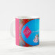 En härlig kaffe- eller teamugg med en dans kopplar ihop i formell klänning och kilt mot en vintergrönablått och körsbärsröd röd pläd med skotska blåklockor.