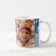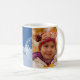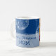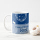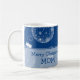 Mugg för foto för god julmamma beställnings- i stilfullt blått- och vitsnowflake- och dekorationmönster med anpassadetext och fotoet, perfekt som en helgdaggåva.