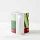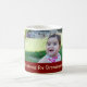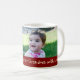 Mugg för foto för god julmormor beställnings- i stilfull rött, gult och grönt med det festliga randmönster med anpassadetext och fotoet, perfekt som en helgdaggåva.
