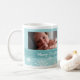 Muggen för fotoet för god julmamman skuggar den beställnings- i snyggt av krickablått, vit och turkos i ett delikat snowflakemönster med anpassadetext och fotoet, perfekt som en helgdaggåva.