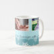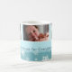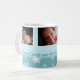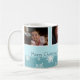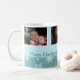 Muggen för fotoet för god julmorfadern skuggar den beställnings- i snyggt av ljust - blått och vit i ett delikat snowflakemönster med anpassadetext och fotoet, perfekt som en helgdaggåva.