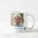 Muggen för fotoet för god julmostern skuggar den beställnings- i snyggt av turkos och vit i ett delikat snowflakemönster med anpassadetext och fotoet, perfekt som en helgdaggåva.