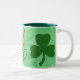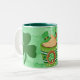 Mugg för St. Patrick's Day med en bild av en hett choklad med schampor, en hatt, halm och kräm på en grönt med vattenfärg. Tack vare Kreativet Fabrica för en del av inslag i designen.