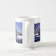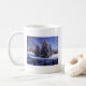 En cheery mugg för varm kakao, kaffe eller tea, med en snöig trio av Colorado grästräd