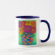 Blom- målningmotiv för färgglad skraj Zinnia av Lisa Lorenz på en kaffemugg.