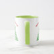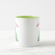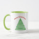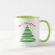 Julgranar på båda sidor om mugg. Linjer i grönt, med minskande längd, skapar bilden av ett Julgran. Den röda text som kurvor ovanför träd kan vara personlig från "God jul!" ***Del av samordnad uppsättning - BKM2k