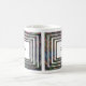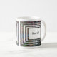 Rektangulära ramar i fyra koncentriska storlekar dupliceras på varje sida. Mönstret för varje ram är en utsmetad bild av en virkad design i flera färger. I mitten står Namn som du kan redigera.