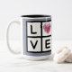 Kärlek ligger i luft med denna vackra grafik med ord i "KÄRLEK" i fet, svart brev, omgiven av söt hjärtformad konfetti. Perfekt för Alla hjärtans dag eller romantiska tillfälle, den här designen sprider kärlek och glädje. Den unika designen har ett 2x2-rutnät med breven "L", "O", "V" och "E" i varje kvadrat, med ett hjärta som består av färglösa konfettsyror i det övre hörnet av högerna. Gråttets bakgrund tillför en aning mjukhet och söthet. Få redot att falla i kärlek med den här charmerande designen!