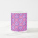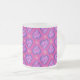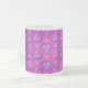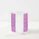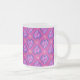 Ett mycket söt och feminin, frostat Glas Mugg i hjärta och blommor mönster, i skuggor av magenta, rosa, blått och lila.