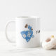 Mugg med brunt och blåttlogotyp och text
