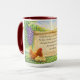 Denna vackert designade mugg fångar en fridfull, trodden lantlig stund inspirerad av Johannes 15:5. Med en försiktig höna och hennes kycklingar inklämda bredvid en blomstrande vinstock med rika lila druvor, speglar detta konstverk skönheten i att förbli i Kristus, det sanna vinet.