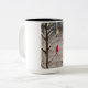 Njut av kaffe eller te i detta vackra mugg med en familj av kardinaler på vintern. Originalet med titeln "Familj Träd" målades av konstnären David Pepper 2022.