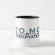 Mugg med den rektangulära logotypen CoMo-bevarande.