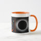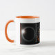 Mugg/Kopp med bilder från Total Solar Eclipse 2024 i Mazatlan, Sinaloa, Mexiko. Sammansatt bild av verkliga 2024 Total Solar Eclipse-foton med en av de mononskulpturer "Arlequín de Carnaval" som installerats längs Mazatlan malecon för 2024 "Eclipse Barroco".