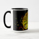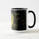 Mugg med digitalt utökad vatten lily-pod med färgstark tillväxt runt omkring det. Bakgrunden är svart och namn kan ändras till man eller kvinna.