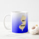 New Jersey delstatskarta i gult till vänster. Till höger står texten "Newark" "New Jersey" "U.S.A." Bakgrunden är blå längst ner med ombre nyansering till vitt längst upp. Anpassa med din stads/kommun namn och bakgrundsfärg som du väljer.