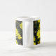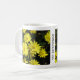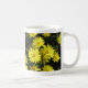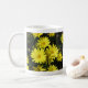 Gula prästkragar med orangea centra mot en bakgrund av mörkt lövverk, pryder varje sida av muggen. Personliggör med användarens namn.