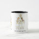 Ett vitt mugg med en svart fälg och handtag, dekorerat med tre scener från ett barns Nativitetsspel, från design som Judy Adamson målat i vattenfärger. Det finns också julkort med dessa utformningar