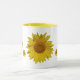 Gult solrossolrosblommar. Stor bild i mitten med tre mindre blommor på vardera sidan.