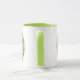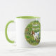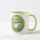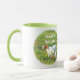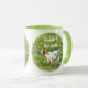 En Ringer Mugg med färg runt läppen och handtag i grönt. Foto på en söt baby-get och texten "Stubborn, Men Cute!" Underbar presentidé!