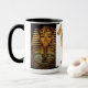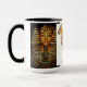 Berättelsen om bilder på muggen, är mycket intressant. Första avbildar från från vänster till höger. På av Tutankhamun. Tutankhamun var endast åtta eller nio då han blev linjalen av Eygpt. Som kungen på en sådan ung ålder, mest av beslutsfattandet gjordes av två höga figurer som var rimliga för att ha varit Ay (far av Nefertiti) och Horemheb, en armécommander. Det finns mer fakta om Tutankhamun. Berättelsen om katten avbildar, ingen berättelse, det är precis en avbilda av en egyptisk katt. Och thirden avbildar. Biskopsstol tillbaka visande Tutankhamen och drottning, nytt kungarike, 18th Dyn., C. 1360 BCE, Cairo
