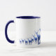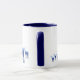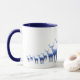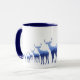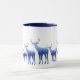 Mugg visas på vit utsida med söt blue hjort/ elk som hörs på nedre kant i mugg från höger till lämnat gradering på storlek som om de går av i avstånd. Insida och handtaget är marinblått. Anpassa det här muggen eller köp som designat. Bild från lagrar på www.freepik.com
