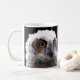 Baby Uggla. Porträtt i vaxet dupliceras och en bild flisas så att de "riktas" mot varandra. Mellan de två huvudena på den svarta bakgrunden finns måne.