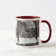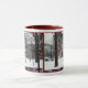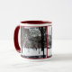 Ett vackert Julgran dekorerar mitten i fält under ett snöfall på detta festliga helgdag mugg.