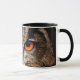 Mugg med ett Wise Uggla Bird med fint Ögon Feather från Wood Forest Fält