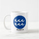Vattumannen - Zodiakaltecken - 21 januari till 19 februari. 2 vågsymboler för vatten (vita i blå cirkel). Text till höger ger färg och attribut för detta tecken.