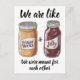 Bilden är generativt innehåll. De var en del av samma bild. Men jag gillade inte de andra sakerna i den bilden så jag beskär dem från bilden och gjorde varje burk till en separat bild och sedan gjorde jag dem till en årsdagsdesign. Jag skrev nästan "vi är som jordnötssmör och gelé, vi hör ihop" men jag skrev "vi var ämnade för varandra". Ursprungligen var burkarna inte lika stora så jag förminskade sidan på jordnötssmörburken för att göra den ungefär lika stor som geléburken eftersom jag tyckte att designen såg bättre ut med burkar av samma storlek. Jag tyckte att designen skulle vara bra nog med en vit bakgrund.