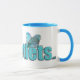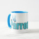 Koppen för mugg för Parrotlets den Stillahavs- blåttParrotlet kaffe som annonserar den TheParrotlets.com websiten, en gemenskap för Parrotlets och deras fläktar. Logotypen och muggen som är designade vid konstnärstack, kortsluter.