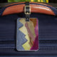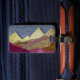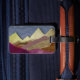 Ett abstrakt med ett unikt färg och struktur som visar en bergscen i skuggor av lila, brunt, beige och brunt.