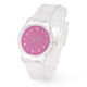 Den här mulberyktade klockan med ett rosa band praktiskt taget gula, "snyggt!" Du kommer att kärlek om hur lockande den djärva färgaden är. Anpassa om du vill ändra färgerna på siffrorna (standardvärdet för färg är vitt) eller ta bort dem helt (minuter skrivs ut på bandet på vissa stilar).