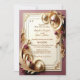 Denna överdådiga, gudomliga barocka invitationskort omfattar överflöd och lyx. Perfekt för par som älskar konst, inveckladhet och finesser i detaljerna. Designen har mjuka förgyllda detaljer på elfenbensvita, mulberryfärgade tulpaner och blomsterornament. Mönstret påminner om barockarkitektur från 1600-talet och uttrycker självförtroende, dynamik och estetik. Tidlösa konstverk har inspirerat både konstnärer och publik. Att återge konsten i subtila färger som mulberry, kräm och mjukt guld är lysande. Ett romantiskt stycke av denna vackra konst är precis rätt för moderna bröllop. Man kan beundra mönstren och helheten med känslan av 3D-effekter. Texten använder ett modernt typsnitt