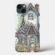 Vattenfärgsstuga i stil med tak i skiktad form och med intrikat gjutgods och mullat fönster och blommor och buskar på frambangården och som leder upp fotstegen till ytterdörren.