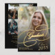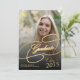 Elegant klassisk chic kalligrafi manus högstadiet universitet enkel stilren svart och guld examensmeddelande med 6 anpassade foton och textmall.