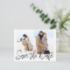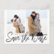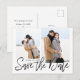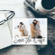 Ett handskrivet Spara datumrubriker täcker över dina favoritfoton på förlovningen i det här moderna spara datum meddelande. Headline kan storlekssorteras och placeras till kostym antingen i ett landskap eller i porträtt. Använda baksidan om du vill ha mer information.