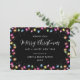 Custom business Christmas card featuring multicolor Christmas lights and falling snow. Easily personalize this black business holiday card with your company name and the year. The background can be changed to any color.
