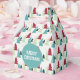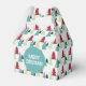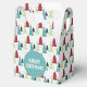These festive Christmas favor box will certainly bring good cheer. The pattern is created with red, green, blue, and dark green trees. Each tree has texture added for depth. The pattern is set against a very light gray background. The box currently says "Merry Christmas". This is a template that can be customized if you choose to do so.