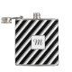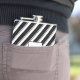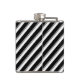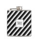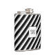 Change the colors of the upward sloping stripes of the design on this vinyl wrapped flask to your taste, using the color swatches in Zazzle's editing tool. There are a total of eight stripes represented by eight color swatches. You can also change the direction of the stripes by flipping the design, or change the slope angle by rotating the design as required, using the rotate tool or design the rotate-handle that appears when the design is selected. You can also personalize the initial, change its color, size and font, and the color of stroke and fill of the box, or remove the initial and the box altogether by deleting them or making them invisible, using the Layers option on the left panel.