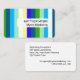 Gorgeous thick striped geometric aesthetic design in multiple colours that are all customizable. Simple typography (also can be changed to fit your style) on the front with the information on the back (the background colour is currently white, but that can be changed). Branding ideas for your small business owner, self-employed artist or "solopreneur".