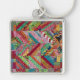 Multifärgad Boho Zigzag Patchwork Quilt Fyrkantig Silverfärgad Nyckelring