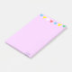 Multifärgad flaggor på violett Post-it Notes. Multifärgat flaggor symboliserar fred, medkänsla och visdom. Text kan vara personlig.