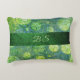 Lägg till lite elegans och stollig i ditt utrymme med den här unika accentkudden. På framsidan möter en charmerande vattenfärg bläck mönster i runda cirklar i skuggor av grönt och blått en sammetsliknande grönt rand som innehåller din familj namn eller ett monogram i ett ljust grönt typsnitt. Vänd den om du vill hitta samma luxuriösa grönt-sammetsbakgrund med rand av vattenfärgsdesignen. Det är två stilar i ett - en fin blandning av sofistikering och konst, allt i ett enda dekorativ kudde. Hobinishop