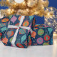 Multifärgad Julgran Dekorationen Mönster vid Guld Presentpapper