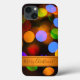 Glatt helgdag. Färgfull avfokuserad julgarland. Fin fotografibokeh. Multifärgat polka dots mot svart bakgrund. Bild av menyfliksområdet gult, där du kan lägga till ditt namn eller den andra texten. Eller kontakta mig via budbäraren så hjälper jag dig. Min text är "God jul!" Den bästa presenten för jul och nyår.