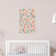 Ett geometriskt mönster av multifärgad fyrkanter i en färg palett av rosa, korall, turkos, grönt, gult och beige.