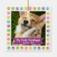 "Min första jul." Fira att ditt nya husdjur anlände förra året! En lila plommonbanderoll med ditt husdjurs namn och årgång i vit typografi övertäcker ditt marionettfoto eller kattens anpassningsbar. En lekfull gräns av multifärgadens lila, rosa, orange, gult, turkos och grönt tass avtryck mot vitt omger den. Känn julhelgens värme och glädje när du visningar den här enkla, snyggt och moderna personligen på fotot. Val av keramiska material, metall, glas eller förstklassiga material från metall ram. Perfekt för den nyligen stolta föräldern! Byt bara ut det här exempelfotot mot en av dina egna, skriv in namn efter eget val och år, och du kan enkelt anpassa det här julfotot efter ornament. Var snäll och meddela mig med eventuella frågor eller förfrågningar.
