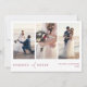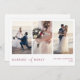 Den här chicen innehåller helt enkelt en ny mall för multifoto-julkort med elegant, minimalistisk och modern design. Framsidan har ditt första namn och år under dina tre favoritfoton och ett "MARRIED and MERRY"-meddelande som förmedlas med en slående blandning av två olika typsnitt, med "och" i ett lätt, flytande skript mellan de andra två ord, som ligger i fodral med ett djärvt och skarpt utseende. "MARRIED and MERRY"-delen av konstruktionen är en elegant av burgundy och kan inte ändras. När du redigerar framsidan för att visa ditt eget namn och år kan du ändra färg i den texten från den brinnande tonen som vi använde (samma ton som texten från MARRIED och MERRY) till svart eller ett visst färg, beroende på hur du smakar. Och när man skriver in sitt eget namn kan man naturligtvis använda ett annat format, som du först namn och sedan, eller "Mr. och Mrs......" etc. På båda sidor har vi gjort bakgrunden öppen för att helt enkelt låta färg i det pappra vara som baston. Du kan ändra detta genom att välja ett specifikt färg för bakgrunden på ena eller båda sidorna i det redigerande verktygen om du vill. Standardtexten färg på baksidan är svart, men du kan ändra detta om du föredrar ett annat färg. Vi har satt upp lite exempeltext på baksidan så att du kan ersätta med ditt eget meddelande när du vill, men känn inte begränsad av det här. Om du föredrar att ta bort vår provtext helt och hållet och behålla tillbaka den helt tom så att du i stället kan skriva en handskriven anteckning på varje kort, kan du göra det. Eller så kanske du vill ersätta vår text med ditt eget tacksamhetsbudskap och din egen stängning och sedan lämna underskriften till namn när du får korten. Kom ihåg att ta bort all text för prov/platshållare på båda sidor och våra foton i fodral! Vi har valt projektionsyta i stället för halvglöd som standardval, eftersom det är väl lämpat att skriva ditt eget budskap på och inte smiter. Man kan naturligtvis ändra detta till halvglöd, eller man kan överväga att uppgradera till något med ett struktur som till exempel Zazzles "Laid" eller "Felt White", som kan ge en känsla av värme och djup. Vi hoppas att du kommer att njuta av att experimentera med olika aspekter av den här snyggten, med dagens tre fotokollage helgdag-kortets utseende och göra det unikt för dig med den intuitiva designen verktyg, dina foton och din inspiration!